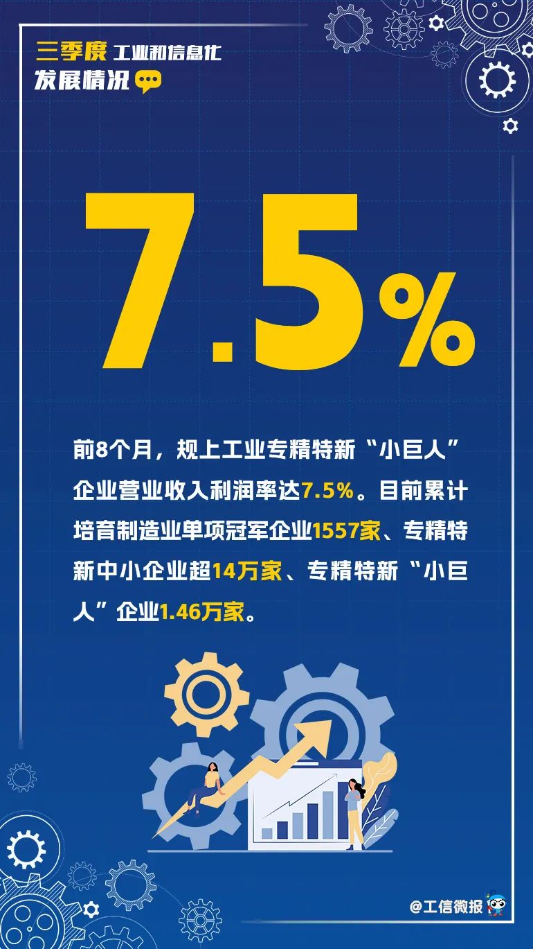 10月23日,工業(yè)和信息化部發(fā)布2024年前三季度工業(yè)和信息化發(fā)展情況。2024年前三季度,我國(guó)工業(yè)和信息化經(jīng)濟(jì)運(yùn)行平穩(wěn),產(chǎn)業(yè)結(jié)構(gòu)持續(xù)優(yōu)化,新質(zhì)生產(chǎn)力加快發(fā)展,重點(diǎn)領(lǐng)域創(chuàng)新取得一批新成果,高質(zhì)量發(fā)展扎實(shí)推進(jìn)。一起來(lái)關(guān)注——