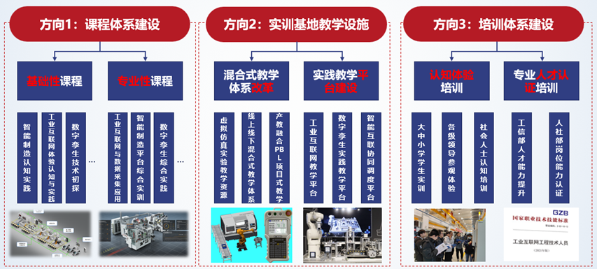 此外,實(shí)訓(xùn)基地還將進(jìn)一步完善實(shí)訓(xùn)基地教學(xué)設(shè)施,開展線上線下相結(jié)合的混合式教學(xué)體系改革。以工業(yè)互聯(lián)網(wǎng)、智能制造、數(shù)字孿生等作為主干課程,在實(shí)訓(xùn)基地現(xiàn)有教學(xué)設(shè)施的基礎(chǔ)上,研發(fā)更多工業(yè)互聯(lián)網(wǎng)相關(guān)專用教學(xué)設(shè)施、設(shè)備,并開發(fā)相應(yīng)的線上教學(xué)資源,形成虛擬仿真實(shí)驗(yàn)教學(xué)能力、線上線下混合式教學(xué)能力和產(chǎn)教融合PBL項(xiàng)目式教學(xué)能力,最終建成全國領(lǐng)先、線上線下融合的工業(yè)互聯(lián)網(wǎng)人才培養(yǎng)體系。