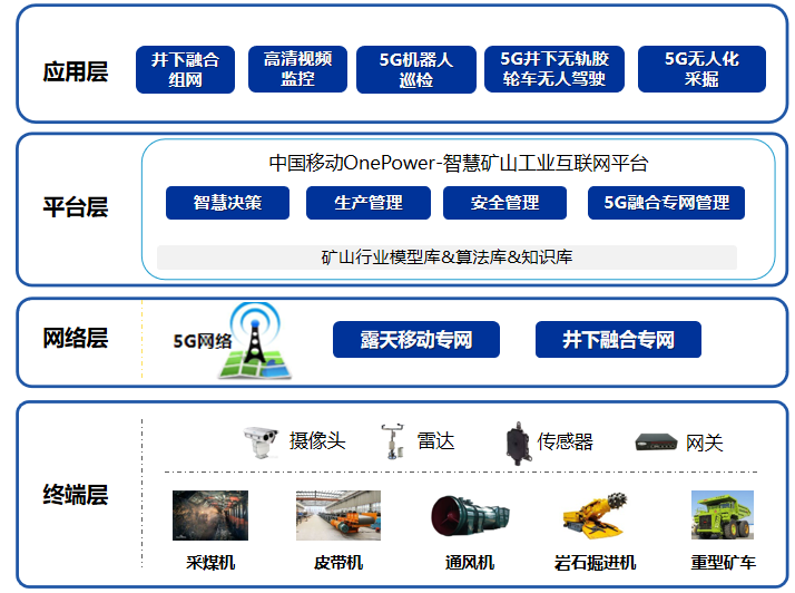 目前中國移動聯(lián)合內(nèi)蒙古麻地梁煤礦以及業(yè)內(nèi)合作伙伴,從5G專網(wǎng)網(wǎng)絡架構、井下融合組網(wǎng)、高清視頻監(jiān)控,層層突破,形成并成功驗證了中國移動“1+1+N”智慧礦山解決方案,并成功打造了多個行業(yè)第一,包括到5G工業(yè)級模組在井工礦采煤機上的首次應用、5G+無軌膠輪無人駕駛在井工礦的首次實現(xiàn),在煤炭行業(yè)有著極高的可復制性和推廣性,對其它類型的智慧礦山(煤礦、金屬礦、非金屬礦、氣礦等)同樣具有借鑒意義。