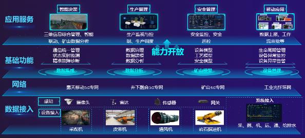 中國移動礦山工業(yè)互聯(lián)網(wǎng)平臺可提供智能決策、生產(chǎn)管理、安全管理等典型業(yè)務應用,智能決策提供礦山的三維信息綜合管理、礦山數(shù)據(jù)分析、智能聯(lián)動服務;生產(chǎn)管理提供采煤機等井下設備的生產(chǎn)監(jiān)視與控制、生產(chǎn)調(diào)度;安全管理提供采煤機等設備的安全監(jiān)控和安全巡檢;另外,平臺還提供其他桌面及移動應用等功能,提升礦山生產(chǎn)效率、降低安全風險,支撐礦山智能化發(fā)展。