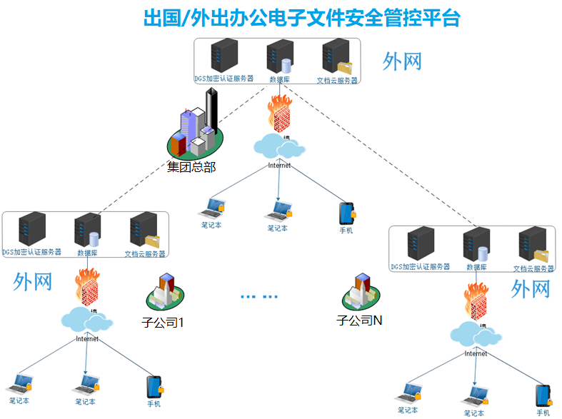 圖2 電子文件外出使用安全管控系統(tǒng)拓?fù)鋱D