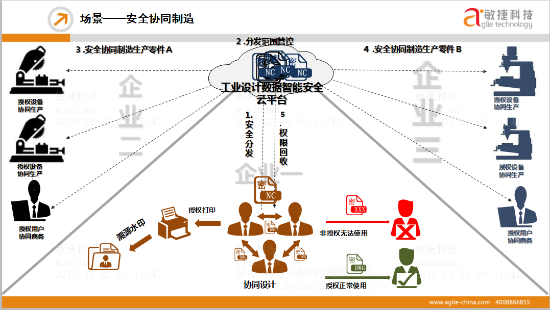 通過協(xié)同制造,中車株所各上下游企業(yè)間可以進(jìn)行生產(chǎn)進(jìn)度信息的高度、實時共享,實現(xiàn)其透明化。同時,項目相關(guān)企業(yè)的生產(chǎn)過程數(shù)據(jù)信息在網(wǎng)絡(luò)協(xié)同制造鏈中順暢流動,可以大大提升智能制造的效率。設(shè)計部門將設(shè)計圖紙通過工業(yè)數(shù)據(jù)智能安全云平臺安全分發(fā)給各協(xié)同制造生產(chǎn)零件企業(yè)進(jìn)行生產(chǎn)制作,給外協(xié)企業(yè)的機密文件進(jìn)行授權(quán),非授權(quán)人員無法使用文件,授權(quán)時可設(shè)置時間、次數(shù),不同的外協(xié)企業(yè)獲取文件后必須通過各自特定的外發(fā)瀏覽插件打開外發(fā)文件,而且文件受到嚴(yán)格的權(quán)限控制,阻止了文件從外協(xié)企業(yè)泄密。