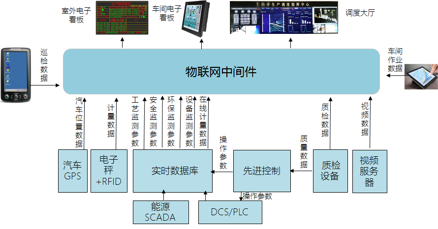 智能物聯的范圍包括:控制系統實時數據、質檢設備數據、電子秤計量數據、汽車GPS數據、巡檢數據、現場作業數據、調度指令及作業指令數據、視頻數據等。