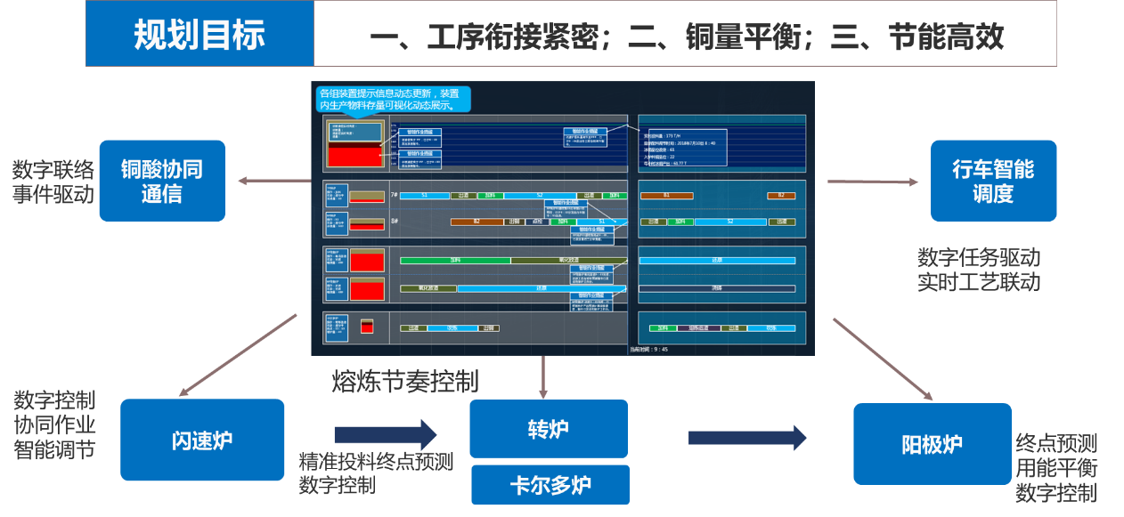打造中國首家銅冶煉智能工廠,包括生產管理、供應鏈管理、設備管理、能源管理、安環管理、輔助決策。