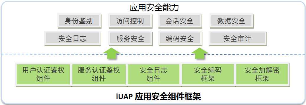 在這些組件及框架的基礎上,應用開發可以快速實現包括身份鑒別、訪問控制、會話安全、數據安全、安全日志、安全審計、服務安全、編碼安全等應用所需的基礎安全能力。