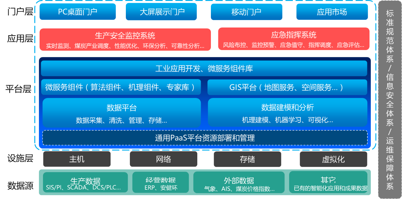 (2)實(shí)現(xiàn)各產(chǎn)業(yè)重要指標(biāo)、運(yùn)行參數(shù)和生產(chǎn)工藝流程的實(shí)時(shí)在線監(jiān)視,提供綜合展示、生產(chǎn)運(yùn)行監(jiān)控、安全監(jiān)控、環(huán)保監(jiān)控等功能,開(kāi)展煤炭供應(yīng)及燃燒優(yōu)化等生產(chǎn)調(diào)度和工藝優(yōu)化應(yīng)用的建設(shè)。