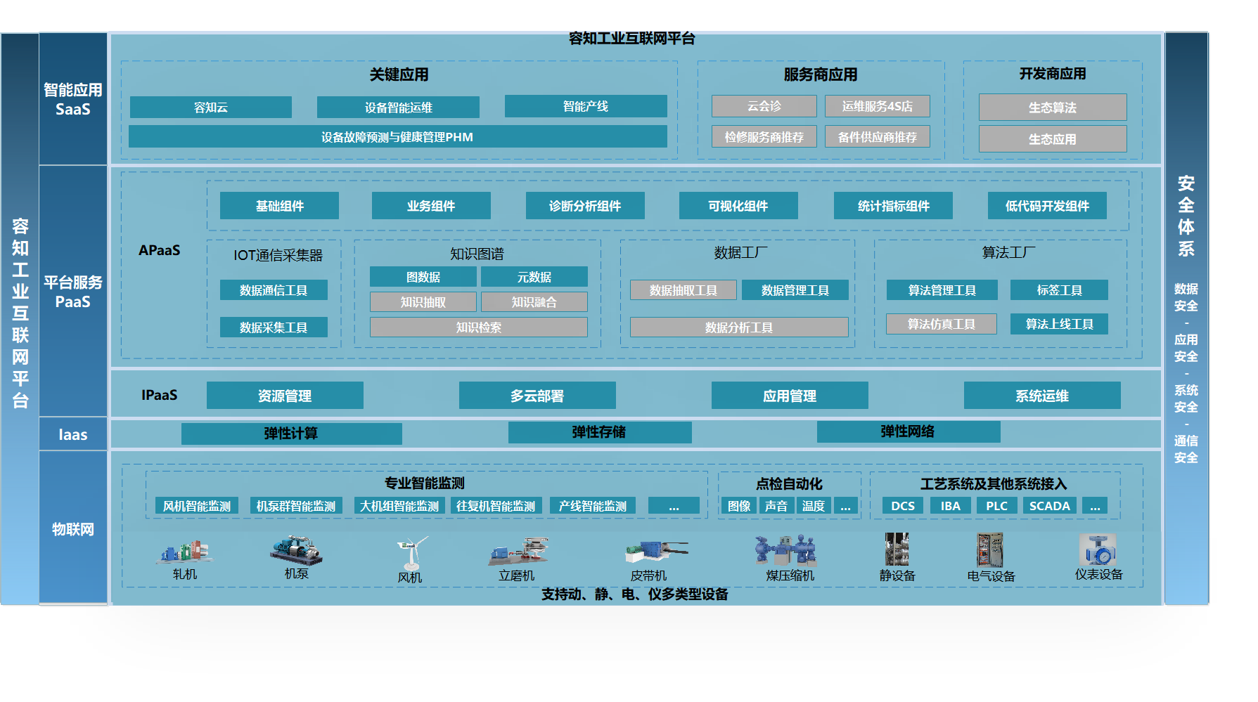在IPaaS層,容知日新靈芝設備智能運維平臺采用CNCF認證的云原生技術(shù),支持資源管理、系統(tǒng)監(jiān)控、安全管理等IT運維能力,基于Helm3技術(shù)的應用程序商店,可以廣泛容納第三方應用;基于10年以上工業(yè)信息化解決方案的經(jīng)驗,平臺自帶大量工業(yè)應用所需的IT組件,覆蓋數(shù)據(jù)庫、存儲、大數(shù)據(jù)、分布式計算等各個方面,并提供優(yōu)化的配置參數(shù),滿足第三方應用對IT基礎設施的需求;廣泛的適應性和架構(gòu)靈活性,可以和企業(yè)基于云原生的PaaS平臺進行整合,符合企業(yè)統(tǒng)一平臺的要求。