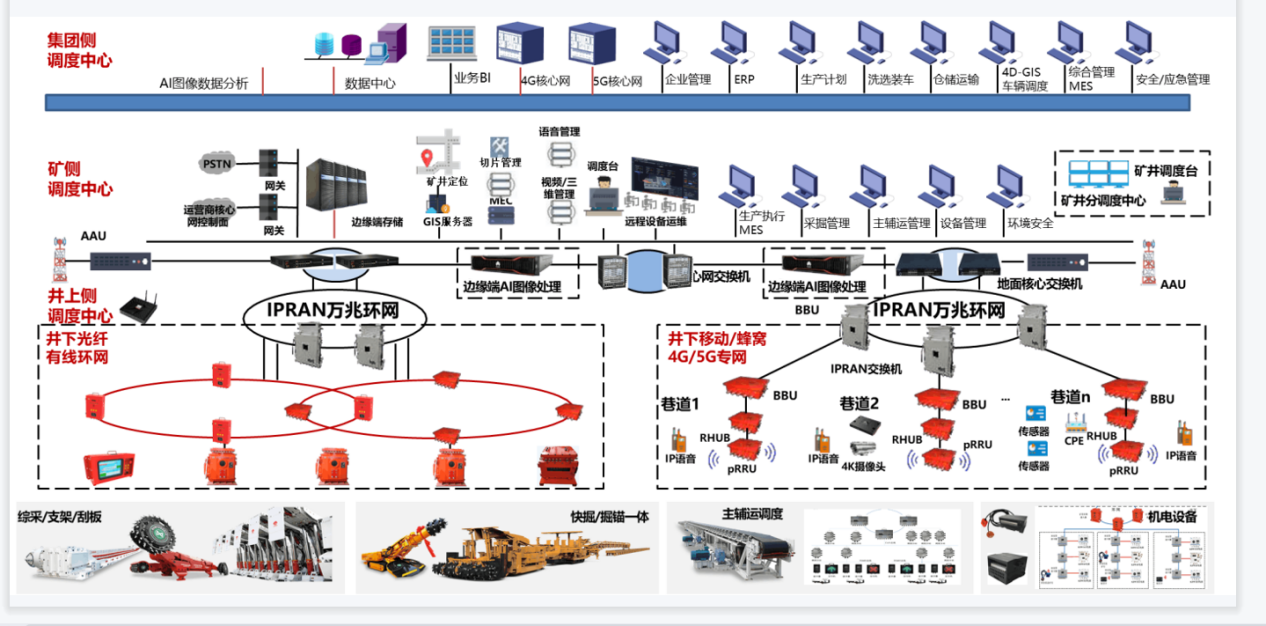 利用“數字化”、“網絡化”和“智能化”的智慧礦山實施路徑,形成“1+1+1+1+N”模式,即1個基礎、1朵云(混合云)、1個信息共享綜合管控平臺、1個生產一體化協同平臺和N個應用(智能綜合管控的生產執行系統、經營管理系統、決策支持系統、安全管理系統、遠程監控及維護系統、統計分析與預測系統、移動智能終端APP)的智能礦井,實現生產智能監控、設備智能管理與監控、安全智能監控、應急智能指揮、風險分級預警與隱患排查、綜合集團駕駛艙、報表統計、數字孿生與仿真等。