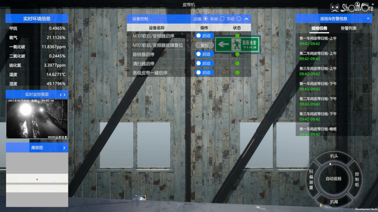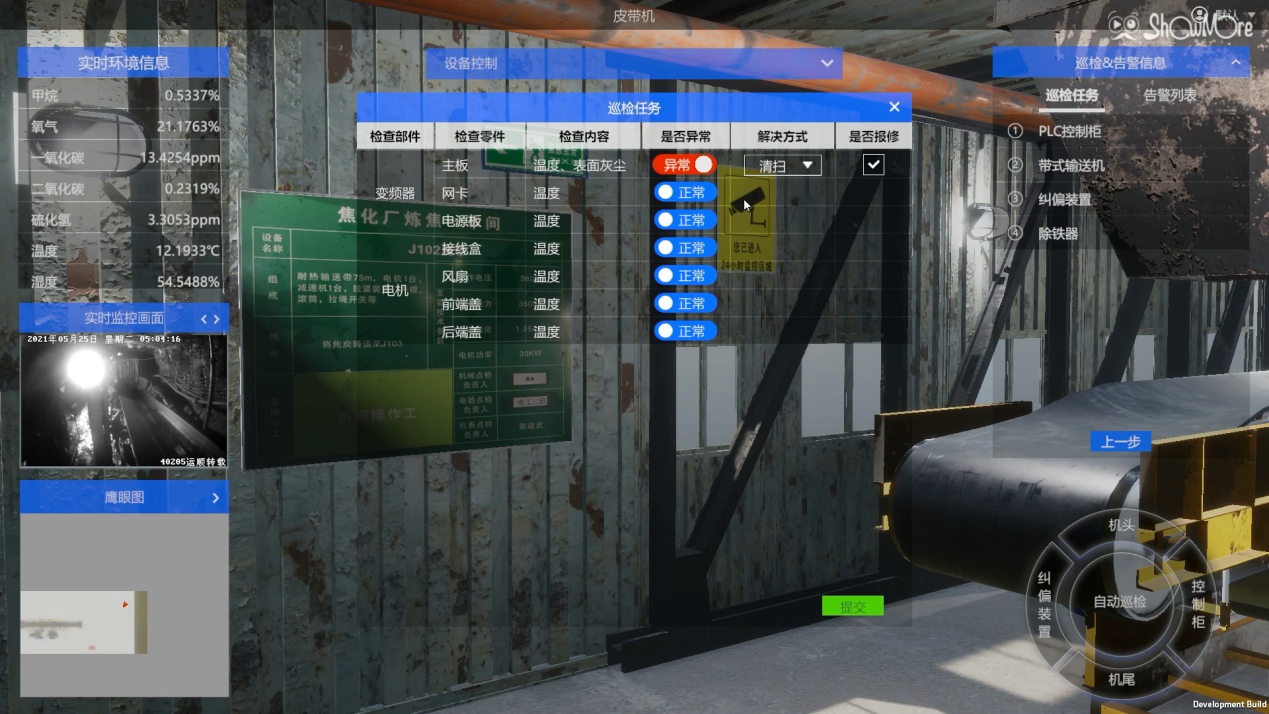 實現基于AI技術的皮帶空載、跑偏、大塊煤、堆煤、異物、人員違規穿越皮帶等監測功能,可以智能識別人員違規作業;實現主煤流運輸系統環境監測預警功能(煙霧、粉塵、明火等)。