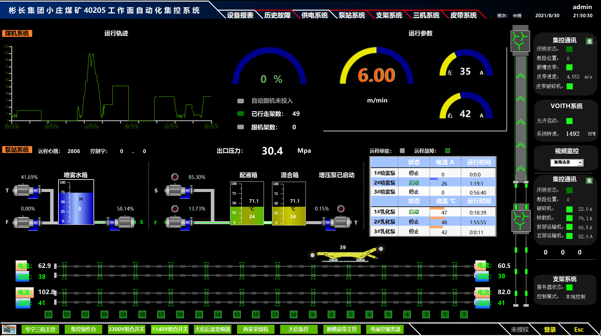實現直線度檢測、防碰撞檢測控制功能;采煤機實現人員接近自動停機功能;與工作面地質保障系統聯動,實現采煤機自適應割煤功能;刮板輸送機實現鏈條自動張緊功能;膠帶輸送機實現異物檢測和帶速智能調節功能;工作面實現基于煤塵監測的智能噴霧降塵功能