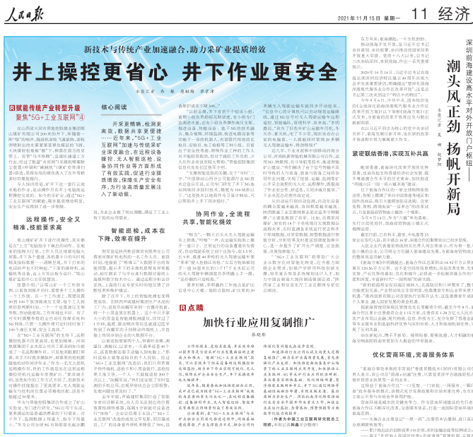 小莊礦業通過安全風險分級分類和分析預警、井下危險區域實時監測、生產設備全生命周期管理和故障識別、礦井人員追蹤管理等落地驗證。提供了可靠的面向國家礦山能源多元災害環境的工業互聯網+安全生產解決方案。11月15日人民日報對陜煤彬長礦區安全生產成績做了報道。