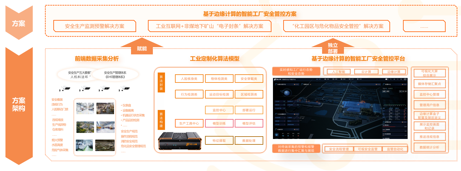 基于邊緣計(jì)算的智能工廠安全管控,在各類工廠,圍繞人、機(jī)、料、法、環(huán)等各個(gè)公共安全,具有廣泛的使用前景。
