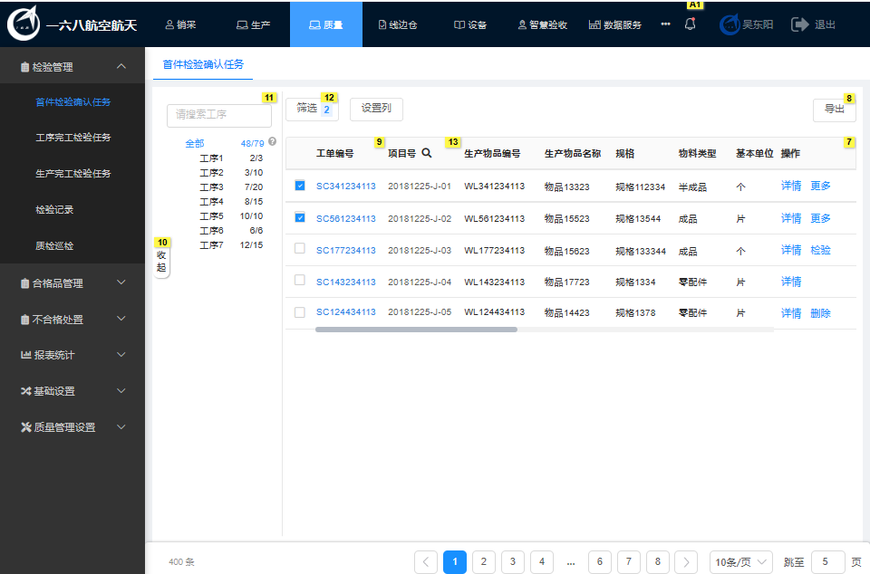 6.生產(chǎn)過程數(shù)字化:實現(xiàn)質(zhì)量檢驗、生產(chǎn)報工、產(chǎn)品工序轉(zhuǎn)移、在制品管理、不合格管理。