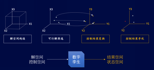 解空間構造:面對一個控制問題,所有可能的決策結果構成一個解空間;每個控制量構成解空間的一個維度;每個控制量單次最大調節(jié)量構成該維度的上下限;每個控制量的單次最小調節(jié)量構成該維度的一個刻度;