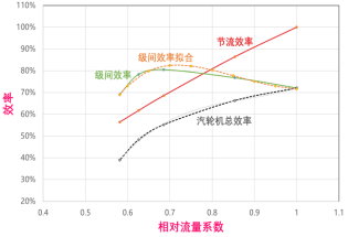 熱電廠的汽機大多采用節(jié)流方式對汽機負荷進行調整,節(jié)流方式會導致蒸汽能量的損失。而熱電由于蒸汽負荷波動大,所以汽機負荷會在較大范圍內波動。如果主蒸汽壓力不考慮汽機負荷的話,會導致低負荷段的汽機能效損失較大。如下圖展示了汽機總效率的計算原理: