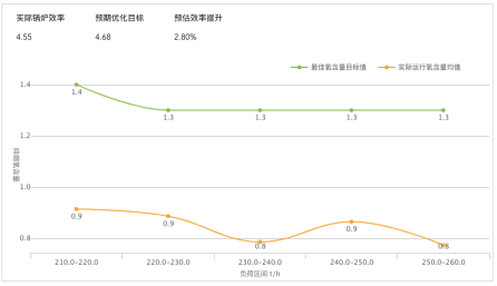 鍋爐的燃燒效率是熱電高效運行的重點,最佳的燃燒效率是鍋爐排煙熱損失和鍋爐未燃燒熱損失的實時平衡。鍋爐的排煙氧量是體現(xiàn)這兩個平衡的關鍵指標。鍋爐在不同工況、不同煤種、不同負荷段下,最佳的排煙氧量均不同。