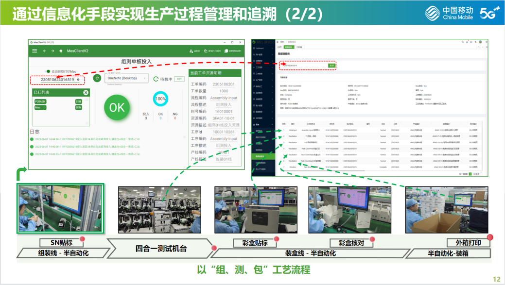 通過5G與區塊鏈、工業互聯網標識結合,將生產過程中人、機、料信息關聯整合,并通過“魯班制造管理平臺(MES)”實時追溯產品批次、品質等信息,輔助動態調整工序參數,提升產品質量。