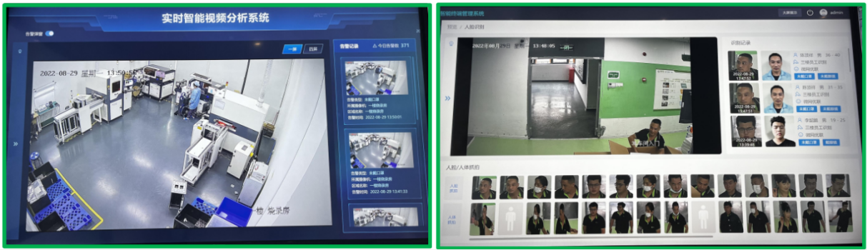 通過廠區監控+AI算法,實現廠區人員的人臉識別和人員管控,并對工業現場攝像機監控畫面內的人員著裝不規范、電子圍欄、人員危險行為等違規場景進行主動識別判斷并給出分析結果,提供展示中心(可視化大屏、視頻監控),違規記錄管理、通知管理,配置管理、系統管理等功能。通過該項應用實施極大降低生產安全隱患,人身安全事故發生率降為0!