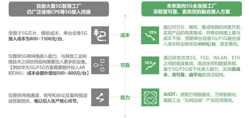 項目基于5G和F5G(PON)技術,開展面向工業場景生產設備實現“工業雙5G全連接”的技術研究和項目實踐,通過對集成電路、芯片模組、PBC電路設計、工業協議適配、邊緣AI等方面的研究,賦能工業連接與OITC更好的融合,并在實現“全連接”的基礎上,結合工業互聯網平臺能力,打造創新解決方案和典型應用場景。