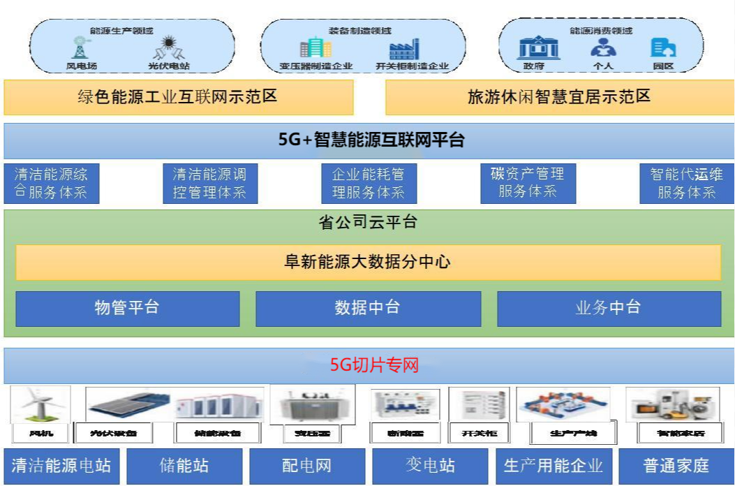 遵循可復(fù)制、可推廣、可開放的原則,按照“能源轉(zhuǎn)型升級(jí)、5G場(chǎng)景同步建設(shè)、業(yè)務(wù)精益管理、服務(wù)持續(xù)提升”的思路,以能源與城市融合協(xié)同發(fā)展為愿景,圍繞“5G、一中心、五體系”建設(shè),打造阜新特色的5G+智慧能源互聯(lián)網(wǎng)小鎮(zhèn)。