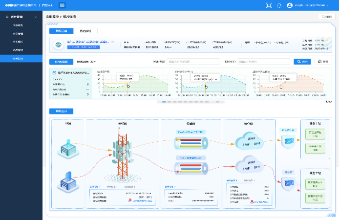 針對(duì)阜新智慧能源小鎮(zhèn)實(shí)際業(yè)務(wù)需求,開設(shè)生產(chǎn)控制大區(qū)切片和管理信息大區(qū)切片,通過通信管理化平臺(tái)切片管理模塊,實(shí)現(xiàn)的上述切片的實(shí)時(shí)管理,實(shí)時(shí)監(jiān)控切片的速率、流量、時(shí)延等信息,實(shí)現(xiàn)可視化管理。