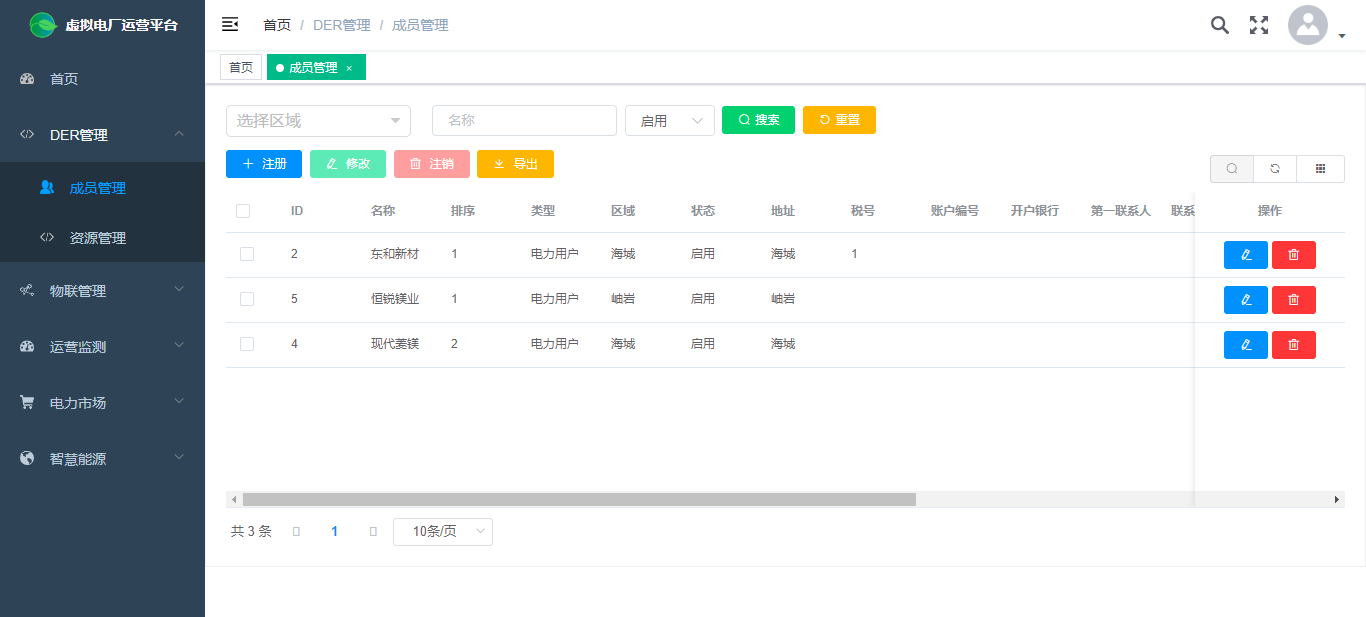 成員管理:維護(hù)成員檔案信息,實(shí)現(xiàn)成員的查詢、注冊(cè)、修改與注銷操作,成員可以是企業(yè)也可以是資源聚合商。
