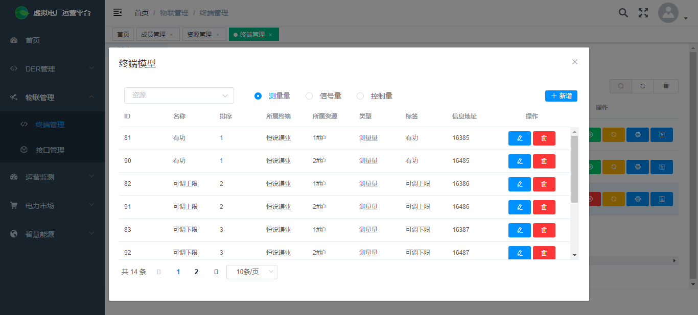 物聯(lián)管理用于維護(hù)虛擬電廠對(duì)外通信相關(guān)的參數(shù)信息與模型配置。