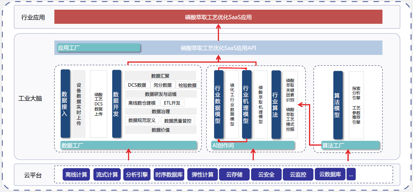 針對上述問題,六國化工與阿里云合作,開展磷化工行業“工業-環境大腦”項目,核心思路是以生產數據為核心,將數理能力與行業機理深度結合,在數據中找到突破效率瓶頸的鑰匙。