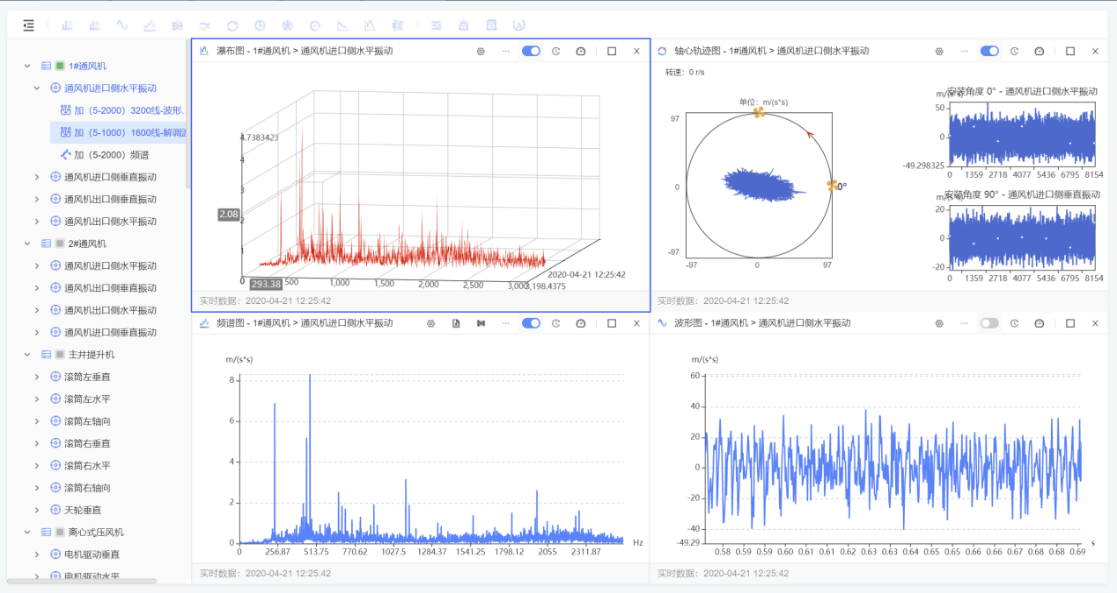 振動分析模塊采用B/S模式實現礦側機電設備的狀態監測,提供十多種專業的振動監測分析圖譜,采用Web動態頁面的方式展現出來,方便集團機電處和礦側專業技術人員對每臺設備的狀態進行監測,對設備故障進行分析診斷。