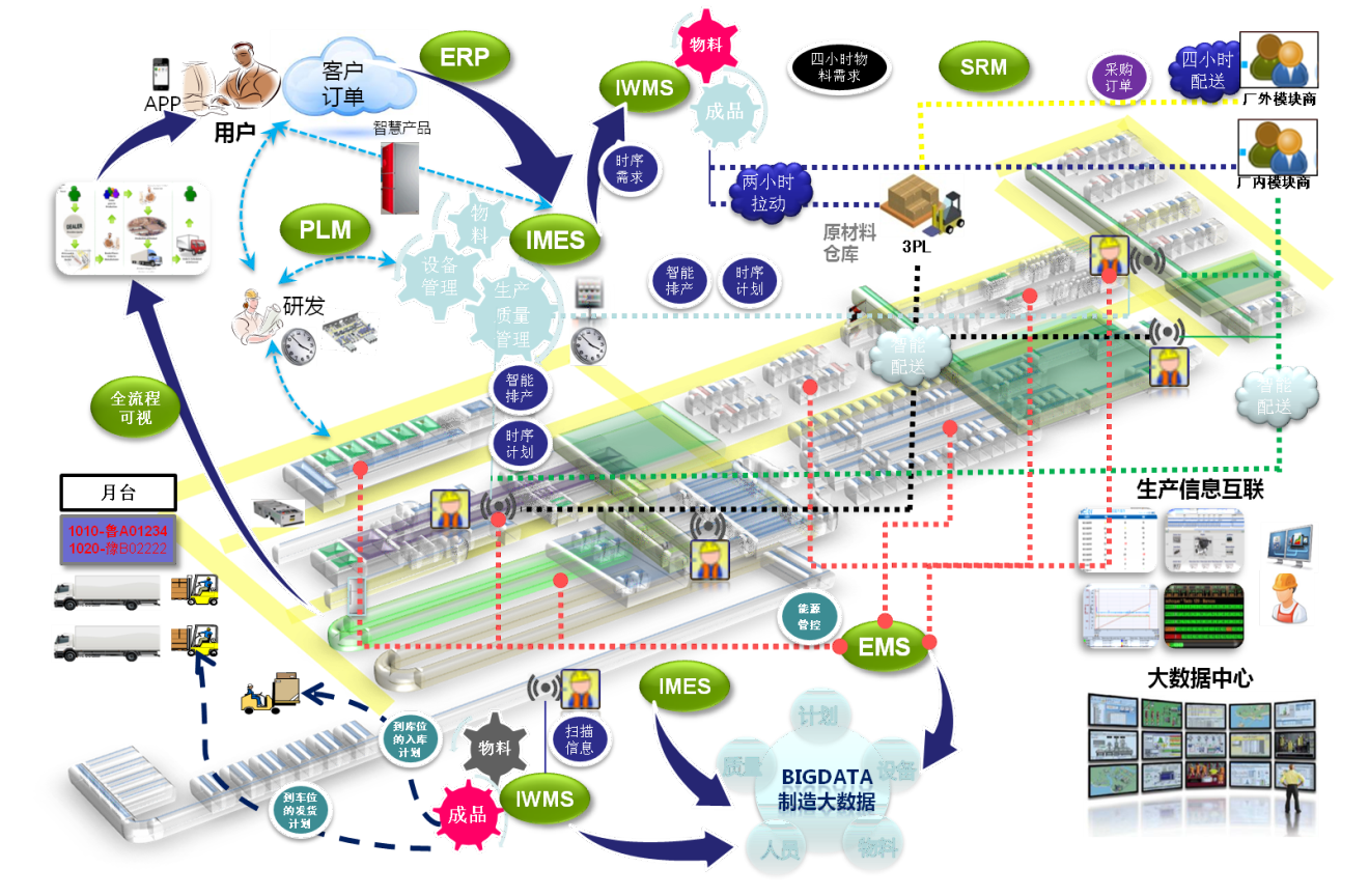 沈陽冰箱數(shù)字化架構(gòu)的核心就是智能制造執(zhí)行 iMES 系統(tǒng),系統(tǒng)上通過iMES 驅(qū)動ERP、Logitics、PLM、Control 五大系統(tǒng)集成;業(yè)務上通過智能的制造,把制造、研發(fā)、物流緊密的互聯(lián)互通。通過智能制造執(zhí)行系統(tǒng)和現(xiàn)場智能化硬件的連接,構(gòu)建了一個高度靈活的個性化和數(shù)字化制造模式,逐步實現(xiàn)從管理、研發(fā)、生產(chǎn)、物流的數(shù)字化管理,提升企業(yè)的智能化水平,在智能制造的基礎上實現(xiàn)最終用戶和生產(chǎn)者的直接關(guān)聯(lián)。