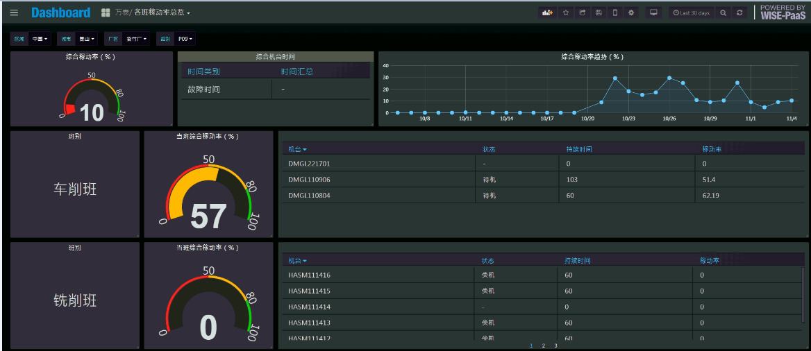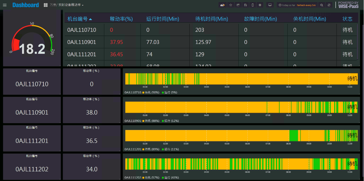 戰(zhàn)情室平臺可以整合設(shè)備、產(chǎn)線、工廠廠區(qū)及集團等KPI信息操盤管理,經(jīng)由多維度數(shù)據(jù)分析,讓工廠管理人員從中挖掘數(shù)據(jù)價值,搭配WISE-PaaS Dashboard可視化系統(tǒng),可有效管理設(shè)備狀態(tài)、稼動率、設(shè)備產(chǎn)能產(chǎn)量、工時、單位成本及能源成本分析等。通過系統(tǒng)的持續(xù)統(tǒng)計分析,將協(xié)助管理者發(fā)現(xiàn)異常與改善空間,持續(xù)優(yōu)化人機料法環(huán)各個環(huán)節(jié),進而達成優(yōu)化。