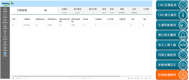 通過WebAccess/CNC可設(shè)置預警保養(yǎng)次數(shù),并監(jiān)控刀具的累計使用次數(shù),在到達界限值時及時預警通知保養(yǎng),以減少更換時間,保障生產(chǎn)品質(zhì)。