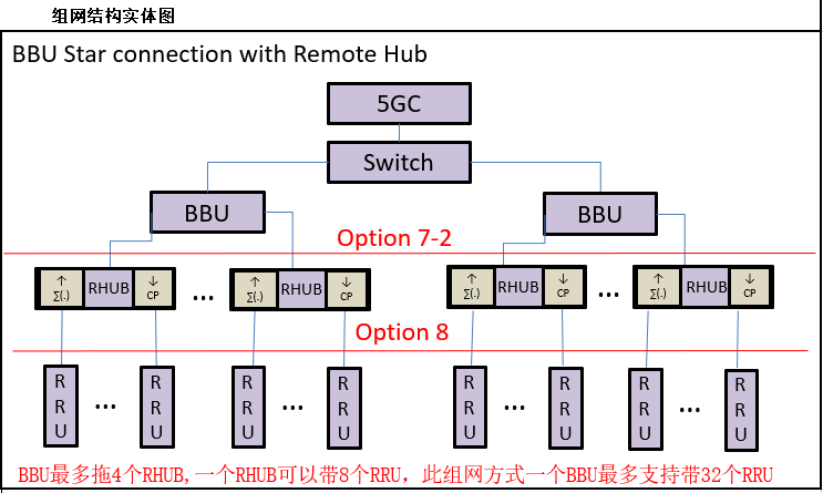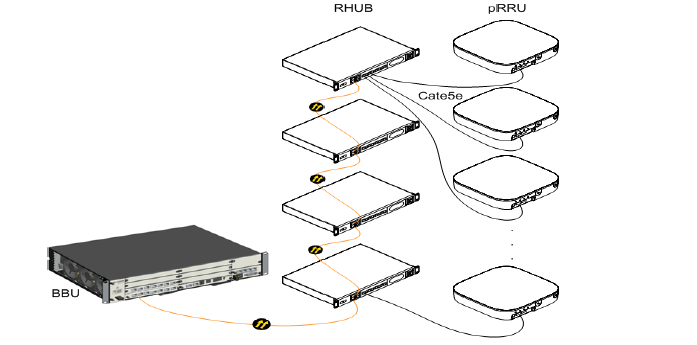 系統(tǒng)組網(wǎng)連接如上圖所示。RHUB使用光電復(fù)合纜連接遠(yuǎn)端單元RRU,RRU含內(nèi)置天線實(shí)現(xiàn)5G信號(hào)覆蓋。