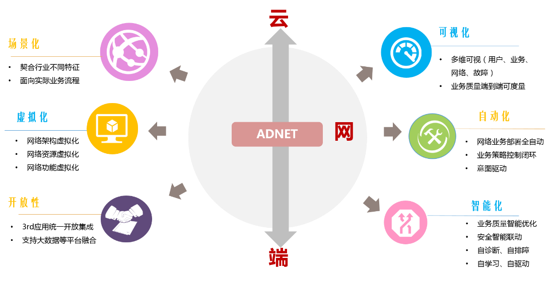 這些問(wèn)題導(dǎo)致現(xiàn)有工廠網(wǎng)絡(luò)無(wú)法支撐數(shù)字經(jīng)濟(jì)下的制造業(yè)生產(chǎn)運(yùn)營(yíng)模式。隨著物聯(lián)網(wǎng)、SDN、IPv6技術(shù)的日漸成熟, ADNET智能工廠網(wǎng)絡(luò)建設(shè)方案(ADNET即應(yīng)用驅(qū)動(dòng)網(wǎng)絡(luò))的提出,幫助制造業(yè)企業(yè)完成工廠網(wǎng)絡(luò)的升級(jí)改造。