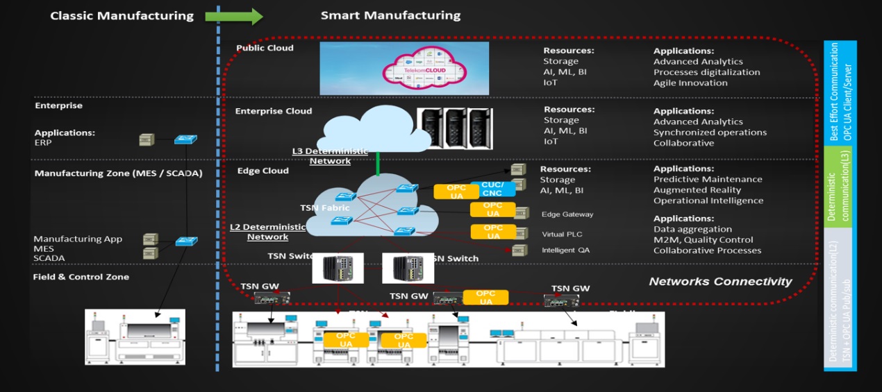 TSN(時(shí)間敏感網(wǎng)絡(luò))+ OPC UA(OPC統(tǒng)一架構(gòu))成為從傳感器到云端建立全面通訊基礎(chǔ)結(jié)構(gòu)的最佳拍檔。