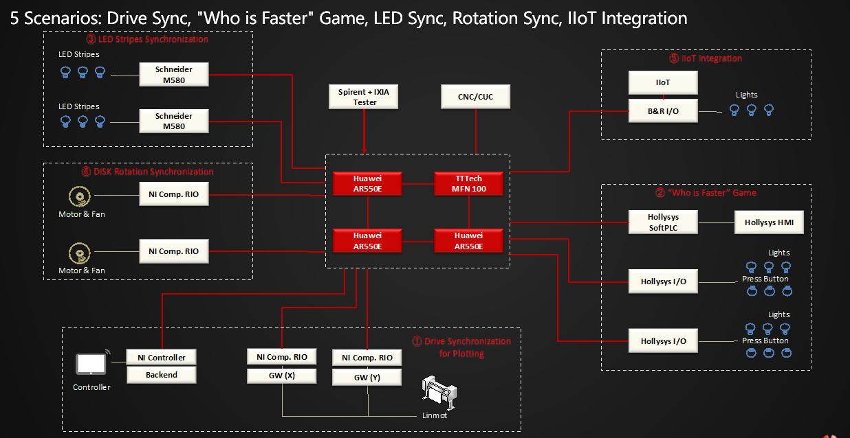 華為與伙伴共同打造OPC UA+TSN網(wǎng)絡(luò)五大工業(yè)互聯(lián)場(chǎng)景,進(jìn)行相關(guān)工業(yè)方案的場(chǎng)景驗(yàn)證。