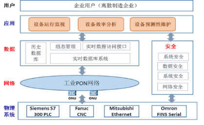 工業(yè)PON網(wǎng)絡(luò)通過(guò)靈活的網(wǎng)絡(luò)配置,完成對(duì)工業(yè)設(shè)備數(shù)據(jù)采集和傳輸,以實(shí)現(xiàn)生產(chǎn)設(shè)備監(jiān)控、信息集采、生產(chǎn)控制等功能。