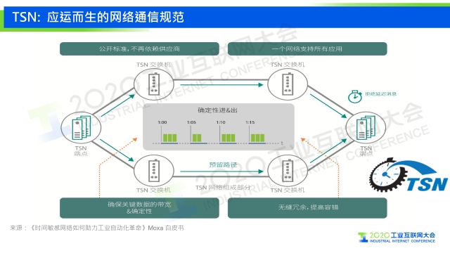 在2020工業互聯網大會“工業互聯網網絡”主題論壇上,摩莎公司中國區智能制造銷售總監馬鋒發表題為《下一代自動化系統的網絡基礎 ——時間敏感網絡(TSN)的應用價值探索》的演講,分享了時間敏感網絡的內涵及發展情況。