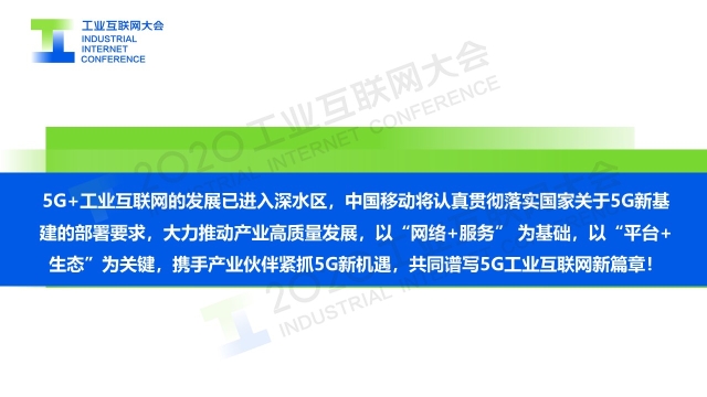 8月30日上午,在2020工業(yè)互聯(lián)網(wǎng)大會(huì)“5G與工業(yè)互聯(lián)網(wǎng)融合發(fā)展”主題論壇上,中國移動(dòng)通信集團(tuán)有限公司政企事業(yè)部副總經(jīng)理俞承志以《5G+工業(yè)互聯(lián)網(wǎng)加速融合 推動(dòng)產(chǎn)業(yè)高質(zhì)量發(fā)展》為題作演講,從網(wǎng)絡(luò)升級(jí)和應(yīng)用升級(jí)兩個(gè)方面,介紹了中國移動(dòng)5G+工業(yè)互聯(lián)網(wǎng)的應(yīng)用實(shí)踐。