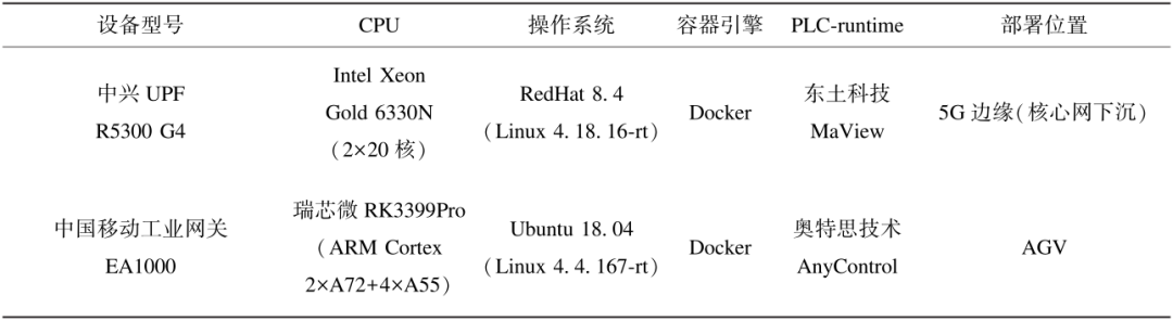 采用實時容器技術分別在5G UPF和工業網關上部署vPLC,將其改造成5G工業UPF和5G工控網關,主要配置如表2所示。