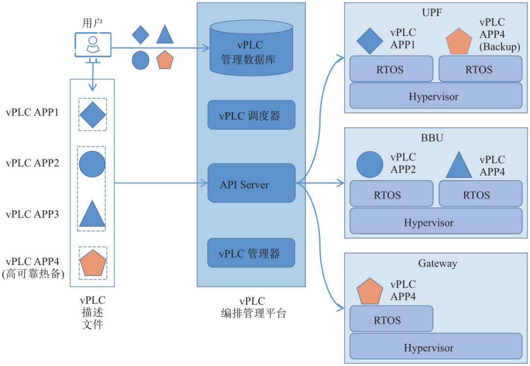 (2)服務層:負責將vPLC部署到不同物理節點,同時對其生命周期進行管理,實現PLC工控服務統一部署和調度。