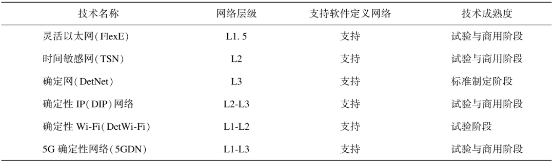 表1   典型確定性網絡技術