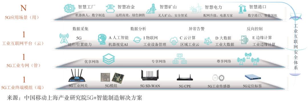 “1+1+1+N”的產品能力體系,即 OnePower包含一系列5G工業終端模組、一張5G工業專網、一個OnePower工業互聯網平臺,以及N個5G應用場景。其中,一系列5G工業終端模組包括新型工業智能網關(現場級)、5G工業模組、工業傳感器、5G 無線終端設備(Data Transfer unit,DTU)等;一張5G工業專網包括新型工業智能網關(工廠級)、高質量外網、工業標識解析和遞歸等;一個OnePower工業互聯網平臺主要是面向中小微型企業提供云化工業應用,面向政府單位提供區域型工業互聯網平臺,為政府施策提供數字化服務,并幫助地方企業轉型及上云,面向行業頭部企業提供工業互聯網行業子平臺,結合行業特色應用,助力企業數字化轉型;N個5G應用場景包括智慧工廠、智慧礦山、智慧電力、智慧冶金、智慧石化等。