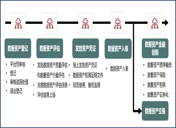 理解了數據要素的特點,就能理解一年多來數據要素市場發展中的困難與問題。數據要素交易所在“數據二十條”出臺前后特別是以后快速增長,但大體上是一個有市無價,或者有市有價無交易的情況,這在其他要素市場上很難看到。各地數據交易所發展很快,到 2023 年 10 月已經超過 48 家。每個交易所都有成千上萬家的數據服務商,也有些入場準備參與確權交易的數據供應方。但一年多下來(有些起步早的交易所嘗試時間更長,有些已有十年之久)數據交易量非常少,整體上仍在嘗試性起步階段。其實許多數據持有者都明白,數據交易很不容易,那他們為什么積極“入場”呢?企業期待數據入表,將數據資產化,進而能夠去做金融創新、融資擔保或資產證券化等。下圖是各個數據交易所表達自己平臺能夠做什么的邏輯:做數據資產登記、數據資產評估;然后發放數據資產憑證,進而入表;入表后的主線是去做金融創新、融資貸款等,其次是進行數據資產的交易。我和銀行開玩笑,說“數據要素市場建設發展的接力棒交到了金融領域,你們遲遲不接棒”。金融業不敢往下做的原因之一,就是認為數據資產定價、交易方式特別是易貶損特點帶來的挑戰和風險都是新問題,需要積極而謹慎,發展與安全并重。不過,雖然我們將數據納入傳統生產要素分析框架中有困難,但這是一個新事物,需要留給創新足夠的時間和空間。而且我們不一定要將其“裝”進我們熟悉的體系構建中間去,要允許探索。但從學術理論角度看,總要構建一個學術體系出來,這是一個非常有創新意義也有挑戰的領域。