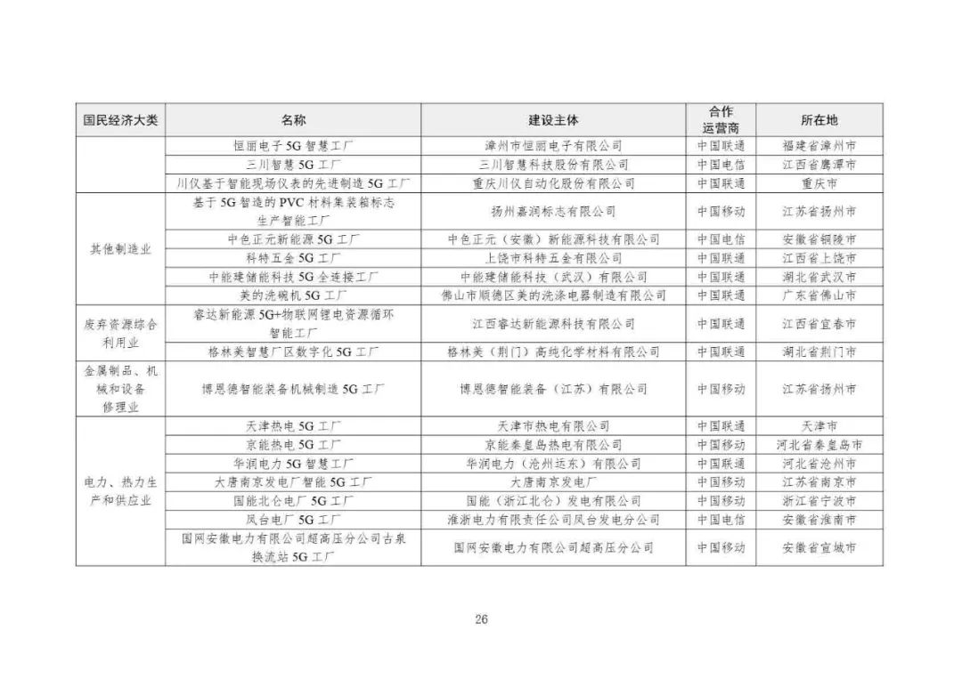 2025年5G工廠名錄: