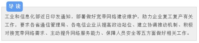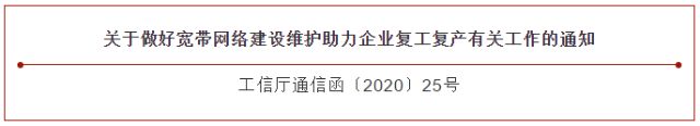 為認(rèn)真貫徹落實習(xí)近平總書記關(guān)于新冠肺炎疫情防控工作重要指示精神和黨中央、國務(wù)院決策部署,有序推進(jìn)疫情防控和企業(yè)復(fù)工復(fù)產(chǎn),現(xiàn)就做好寬帶網(wǎng)絡(luò)建設(shè)維護(hù),助力企業(yè)復(fù)工復(fù)產(chǎn)有關(guān)工作通知如下: