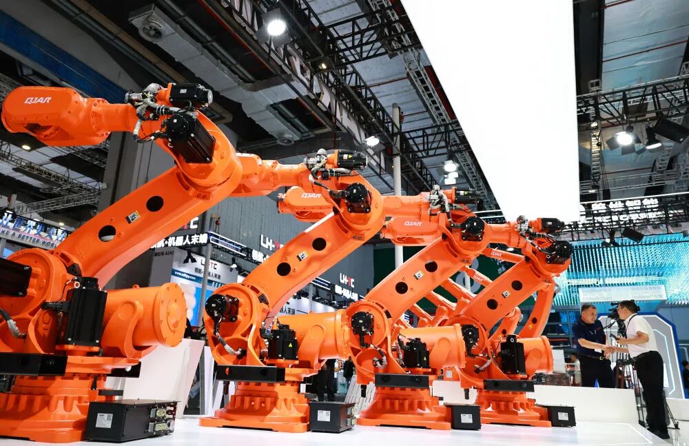 這是2025年9月23日在上海舉行的第25屆中國國際工業(yè)博覽會(huì)上拍攝的一組大型工業(yè)機(jī)器人產(chǎn)品。新華社記者 方喆 攝