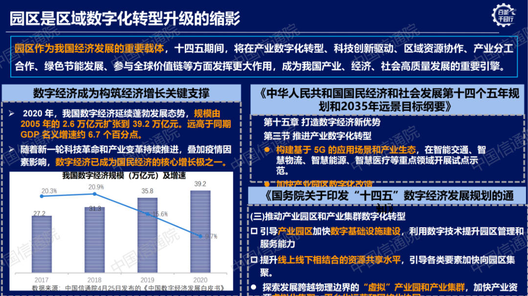 “園區(qū)經(jīng)濟(jì)”是改革開放以來中國經(jīng)濟(jì)發(fā)展的重要經(jīng)驗,不僅成為了中國經(jīng)濟(jì)的載體和平臺,也成為區(qū)域經(jīng)濟(jì)增長的快速增長極。2022年2月,國務(wù)院印發(fā)《“十四五”數(shù)字經(jīng)濟(jì)發(fā)展規(guī)劃》,提出要推動園區(qū)數(shù)字化轉(zhuǎn)型,引導(dǎo)產(chǎn)業(yè)園區(qū)加快數(shù)字基礎(chǔ)設(shè)施建設(shè),探索發(fā)展跨越物理邊界的“虛擬”產(chǎn)業(yè)園和產(chǎn)業(yè)集群。隨著工業(yè)互聯(lián)網(wǎng)的快速發(fā)展和深化應(yīng)用,工業(yè)互聯(lián)網(wǎng)園區(qū)正在加速崛起,工業(yè)園區(qū)、高新技術(shù)產(chǎn)業(yè)開發(fā)區(qū)、工業(yè)化產(chǎn)業(yè)示范基地及各種產(chǎn)業(yè)集聚區(qū)正在加速引入工業(yè)互聯(lián)網(wǎng)技術(shù)和理念進(jìn)行建設(shè)、改造或升級。