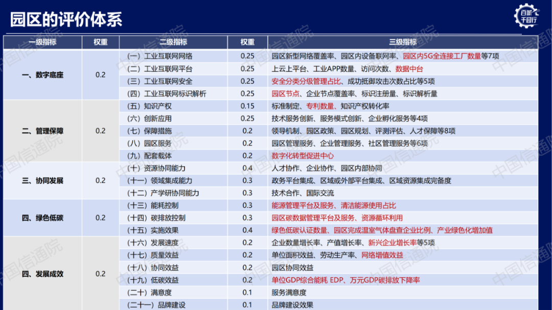 五、 園區(qū)評價指標(biāo)體系
