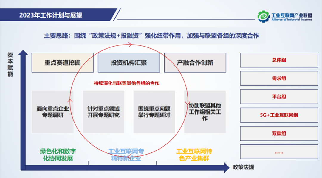 下一步,政策法規與投融資組將聚焦數字化綠色化協同、數據要素、投融資、工業互聯網園區、產業集群等持續開展相關研究,同時加強與聯盟內其他工作組的交流溝通,為相關產業企業發展做好服務。